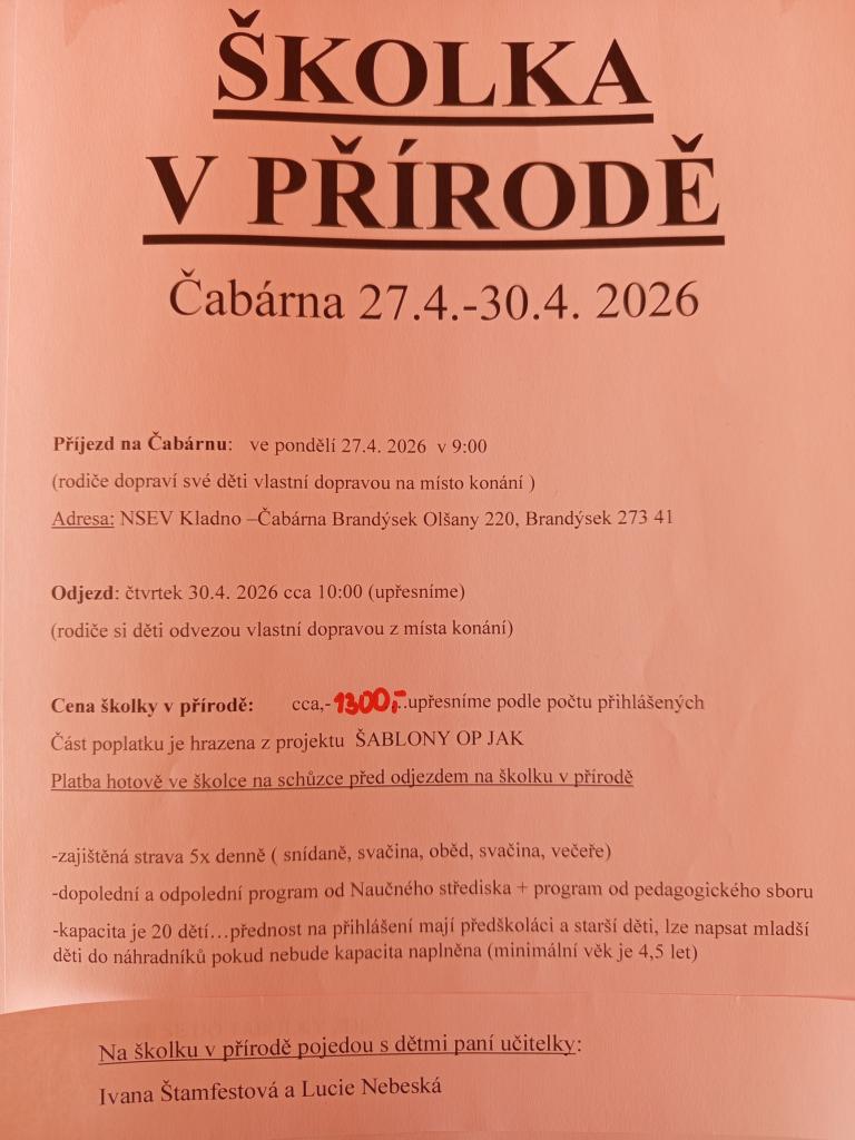Školka v přírodě Čabárna 27.4.-30.4. 2026
